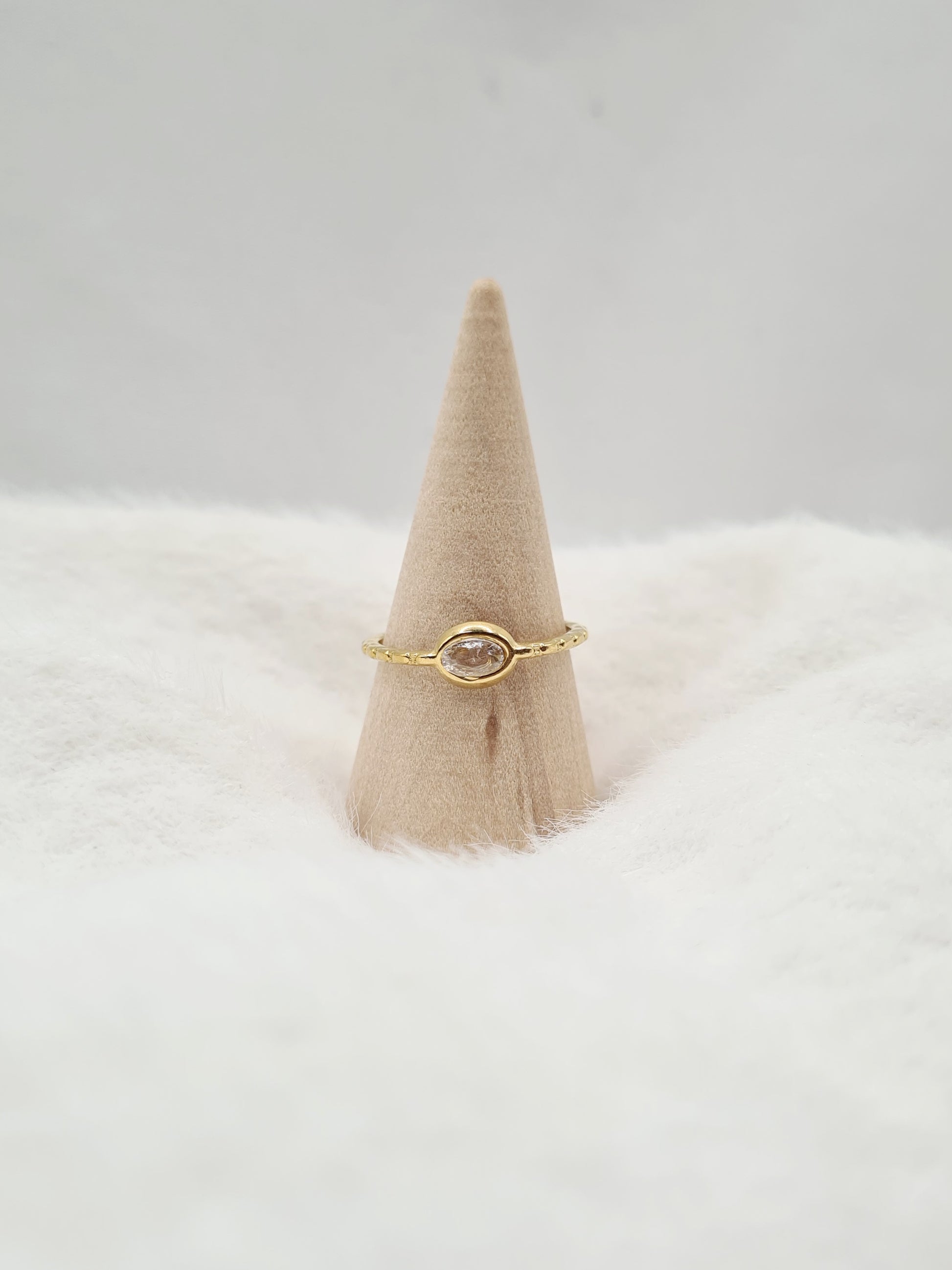 Lena est une bague ajustable en acier inoxydable avec une magnifique pierre de cristal.