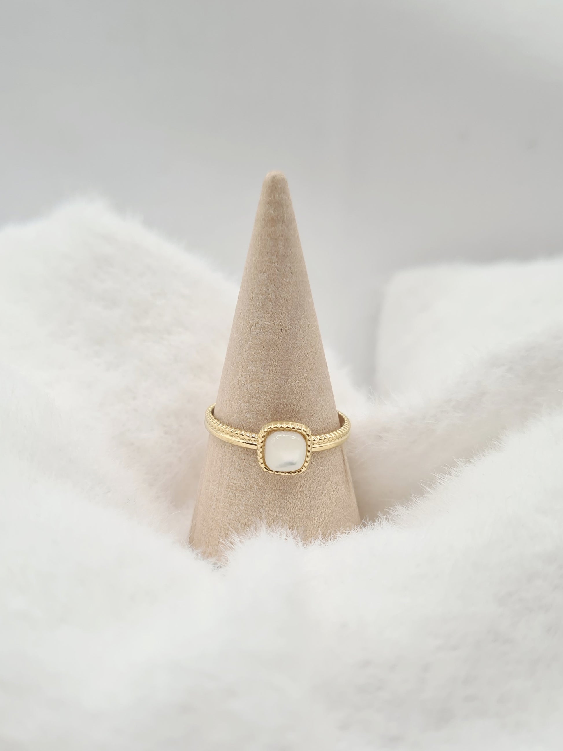 Bague ajustable en acier inoxydable et une pierre naturelle.