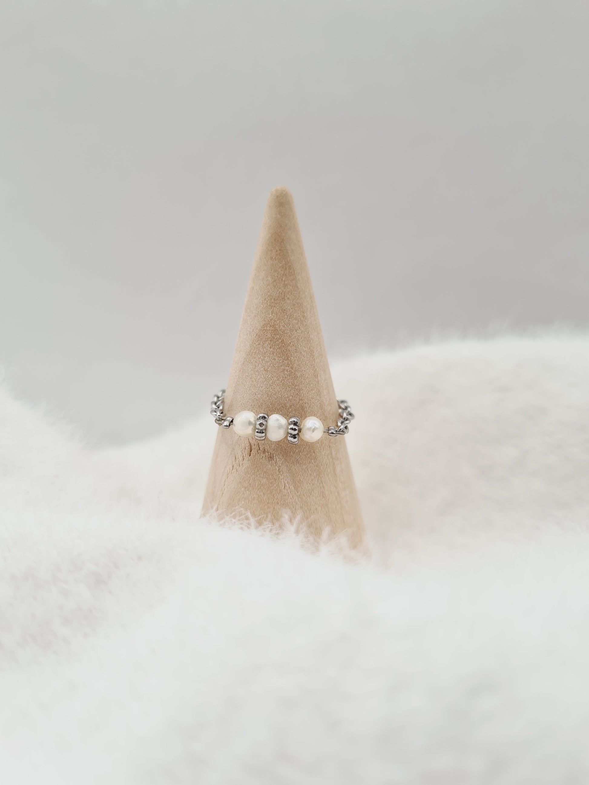 Élégance est une bague en acier inoxydable avec des véritable Perles d'eau douce.