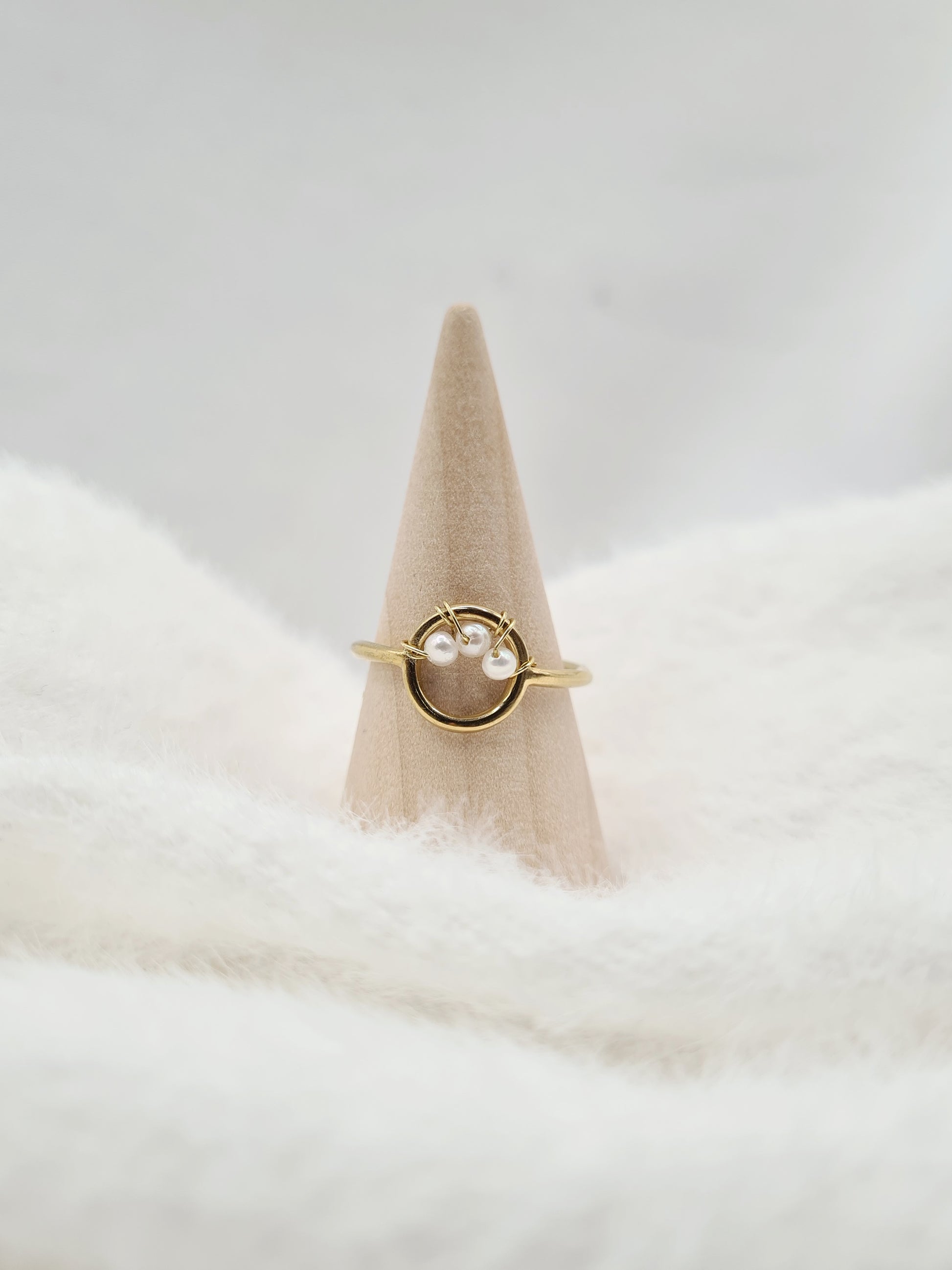 Brooklyn est une bague ajustable en acier inoxydable avec de sublimes perles d'eau douce.