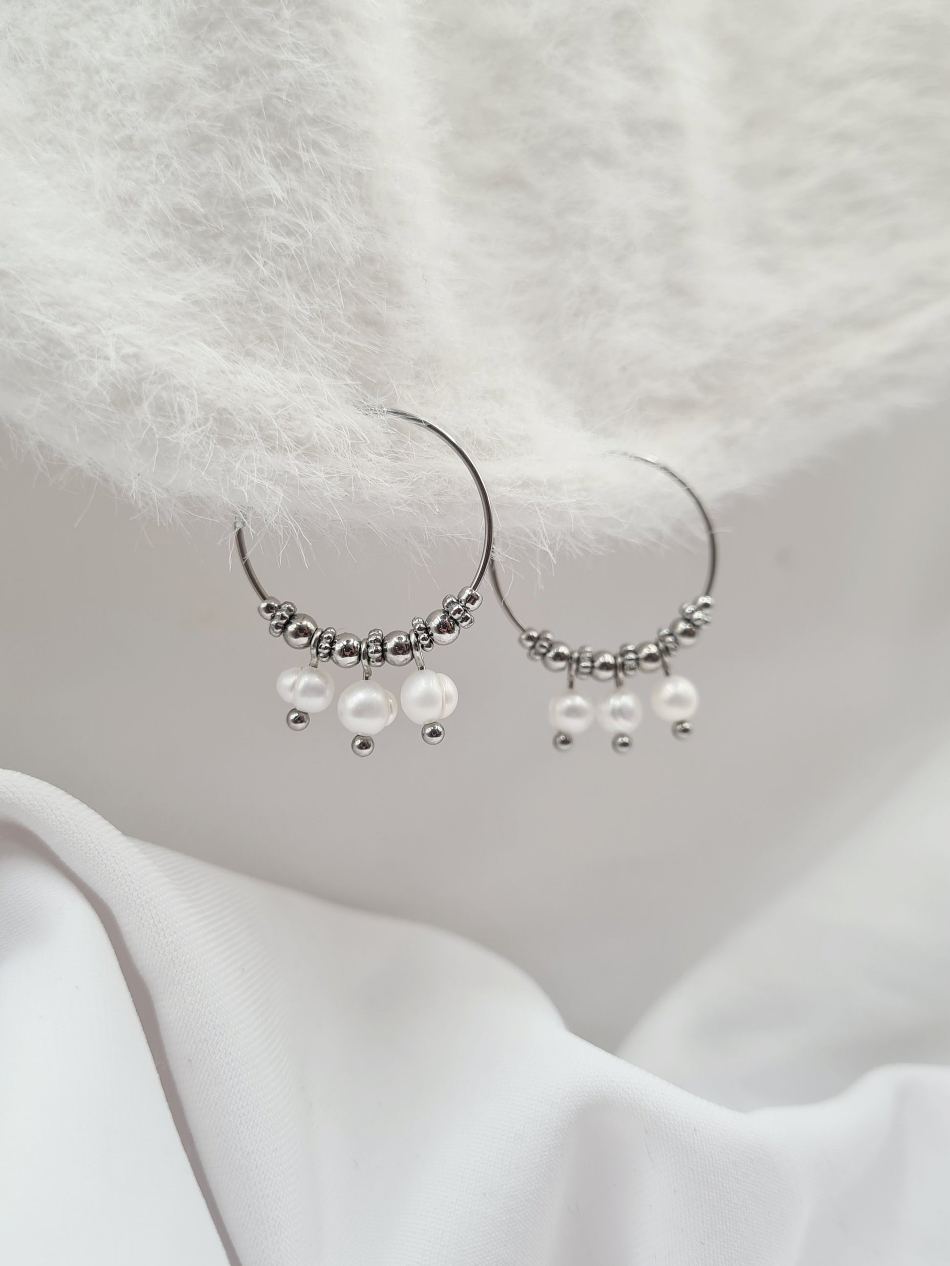 Sika sont des boucles d'oreilles en acier inoxydable avec de magnifique Perles d'eau douce.
