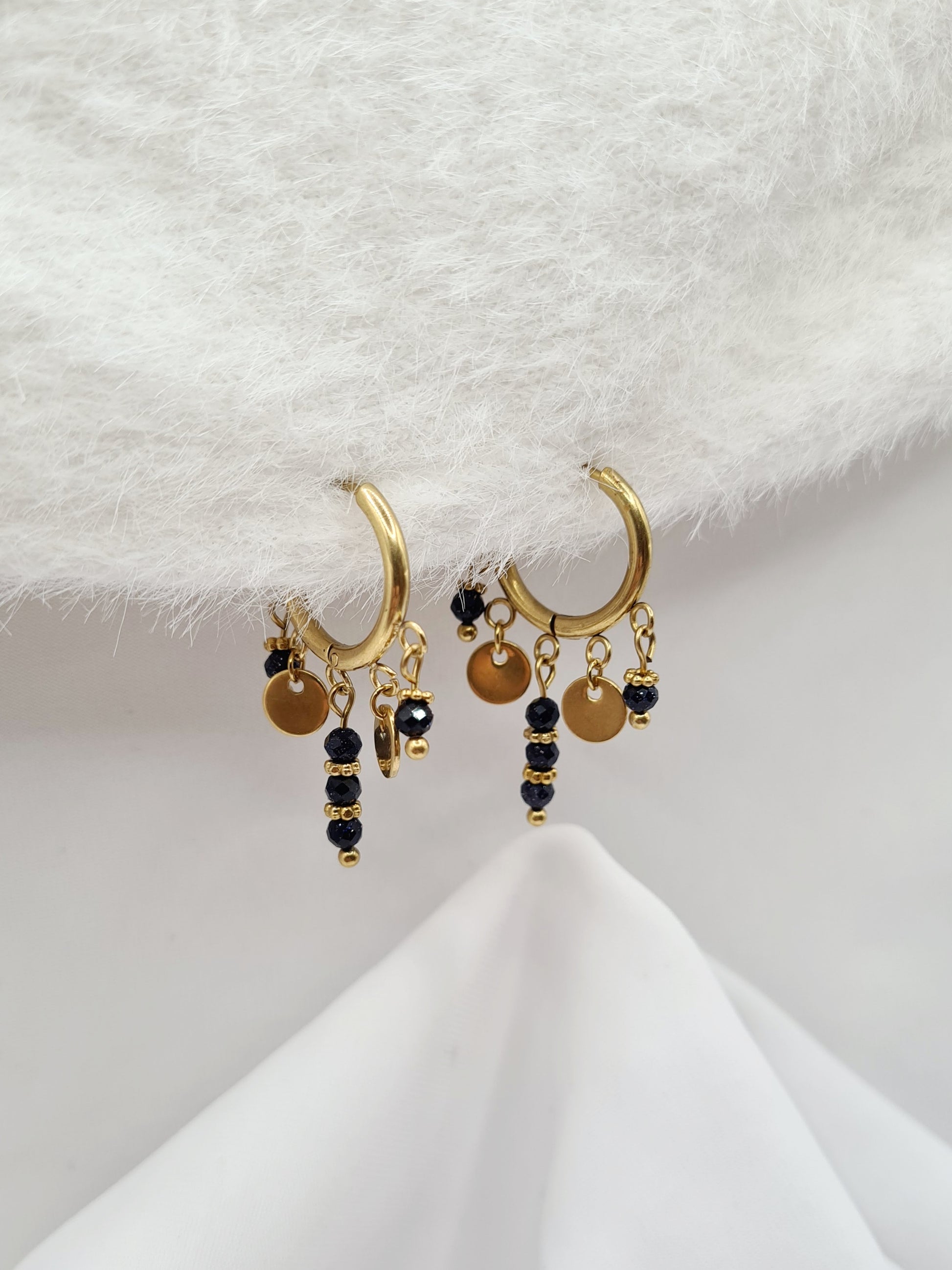 Élégance sont des créoles en acier inoxydable avec des véritable Pierres naturelles.