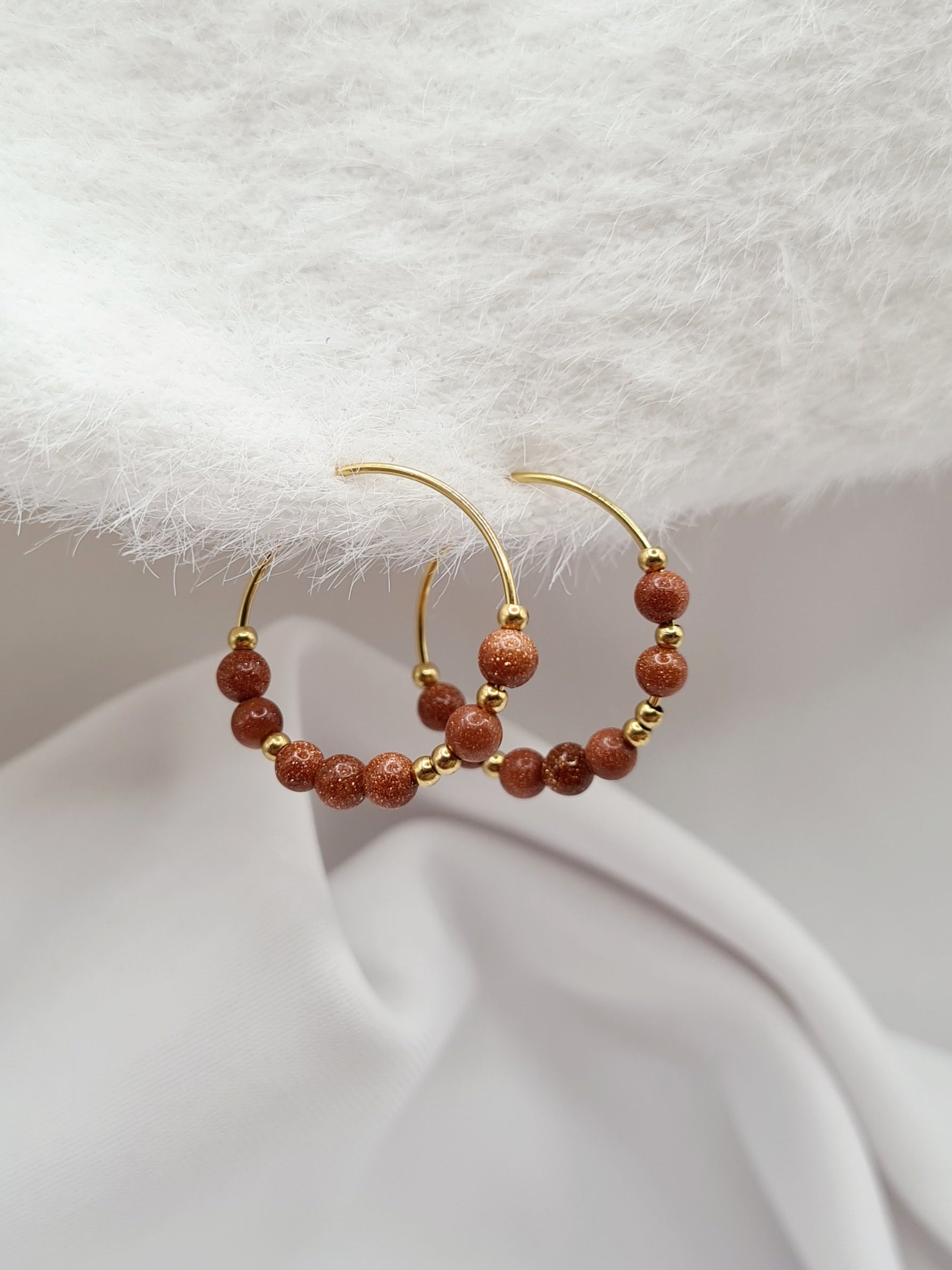 Sable sont des créoles en acier inoxydable avec des pierres de sable doré.