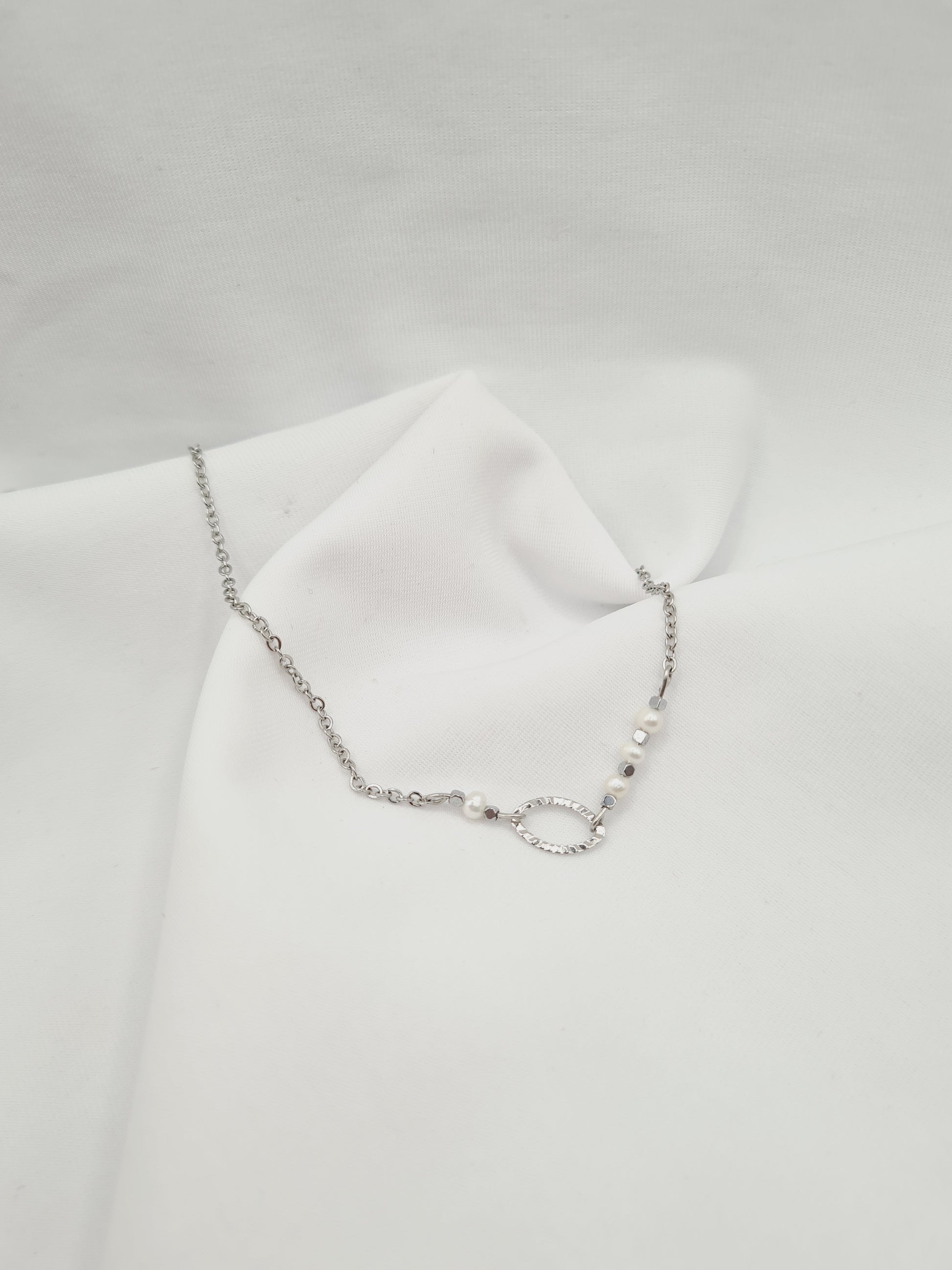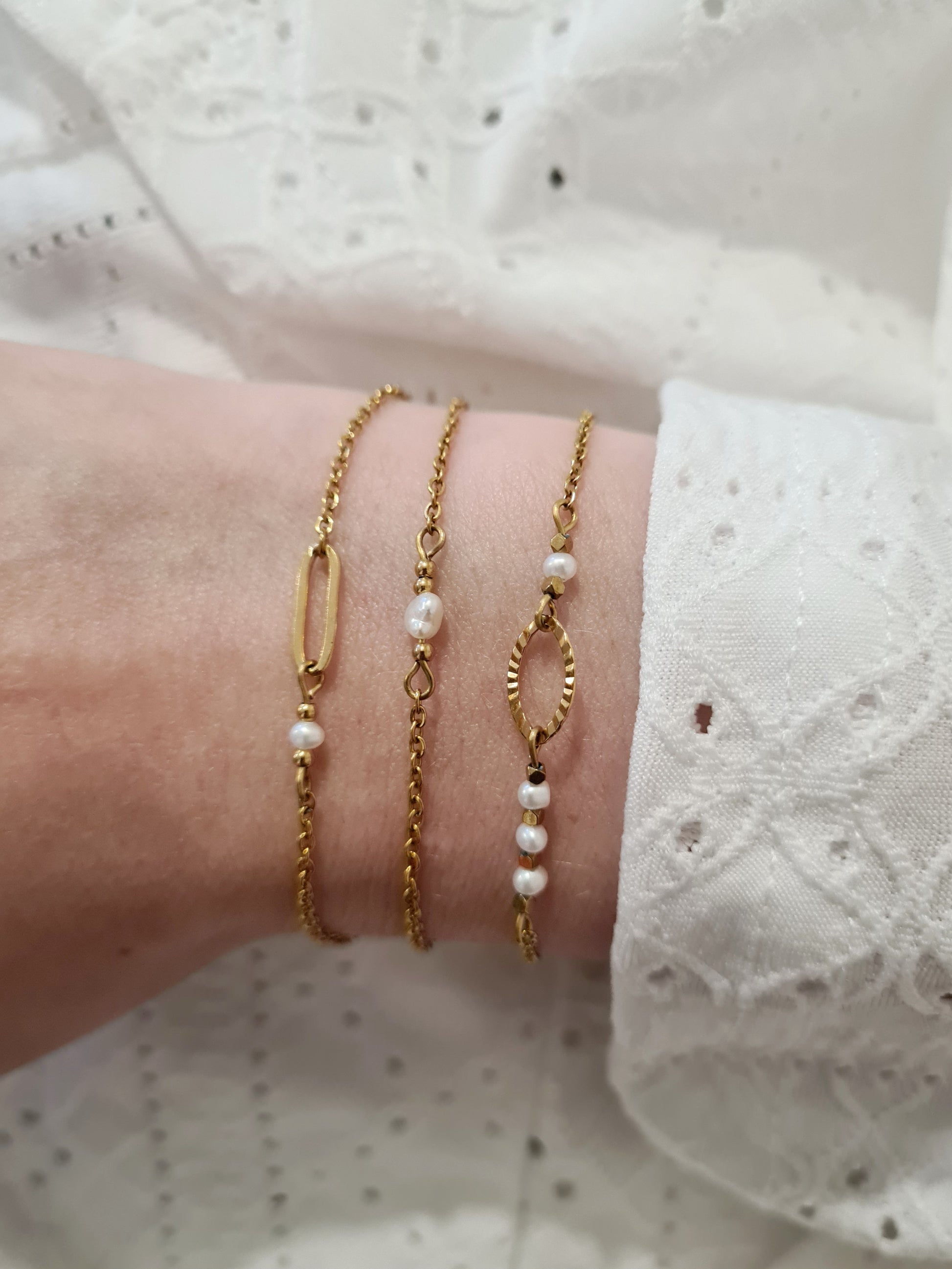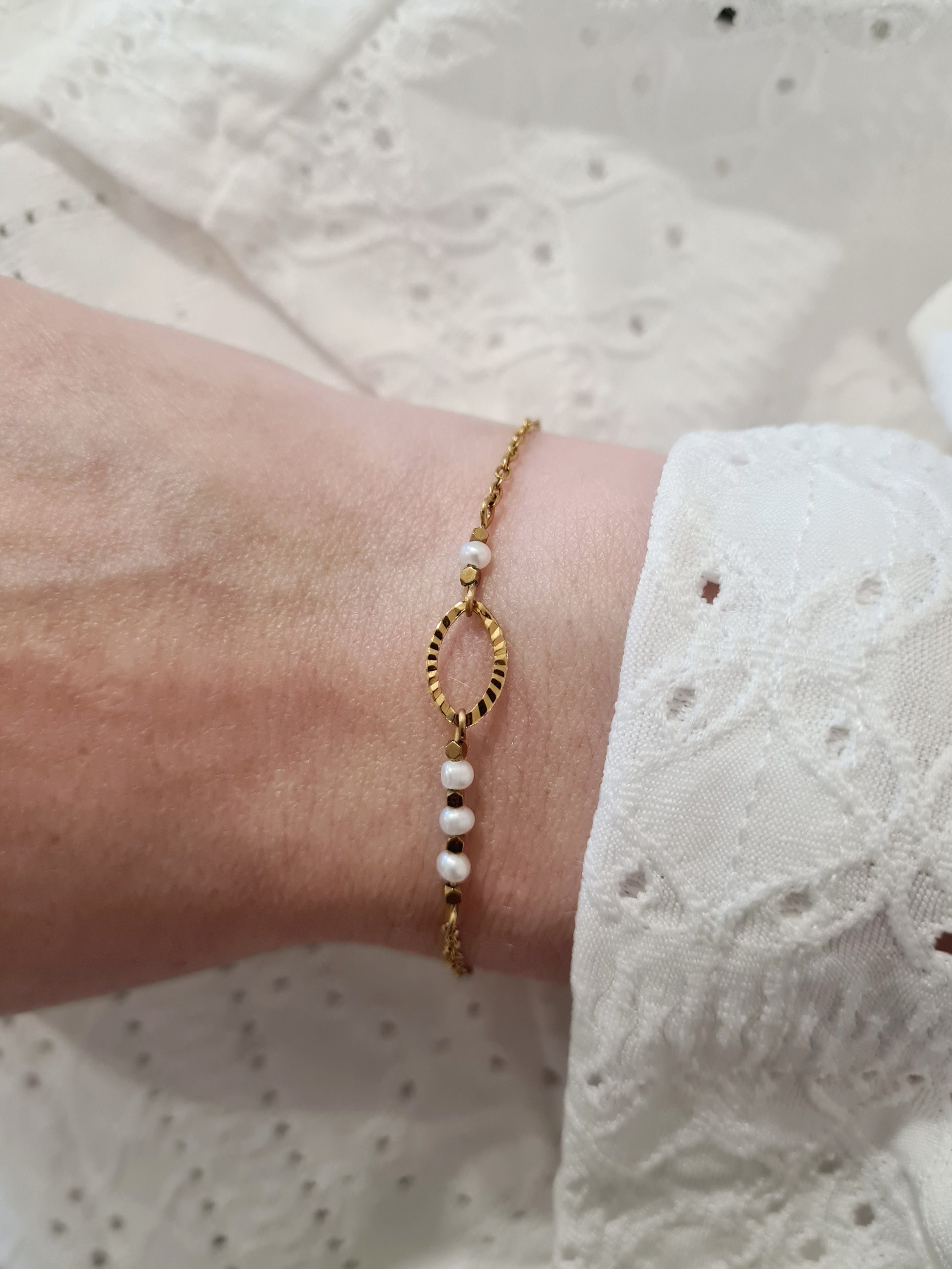 Amande est un bracelet en acier inoxydable composées de véritable Perles d’eau douce.