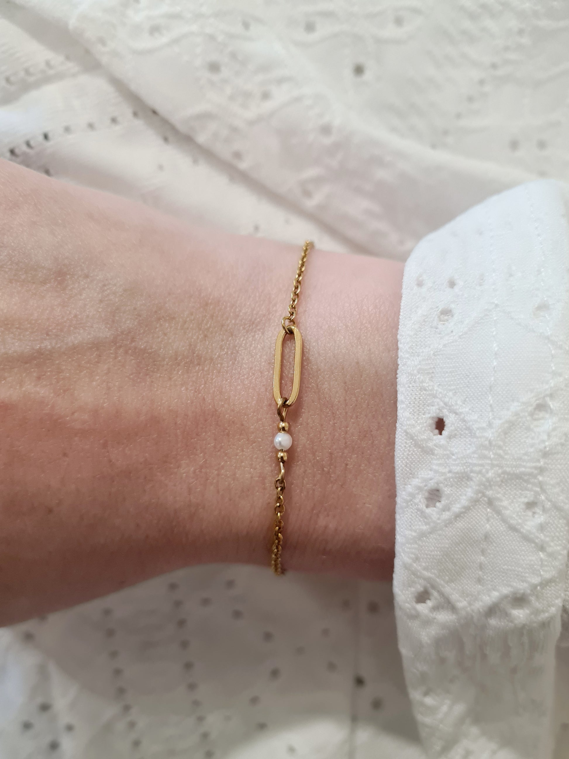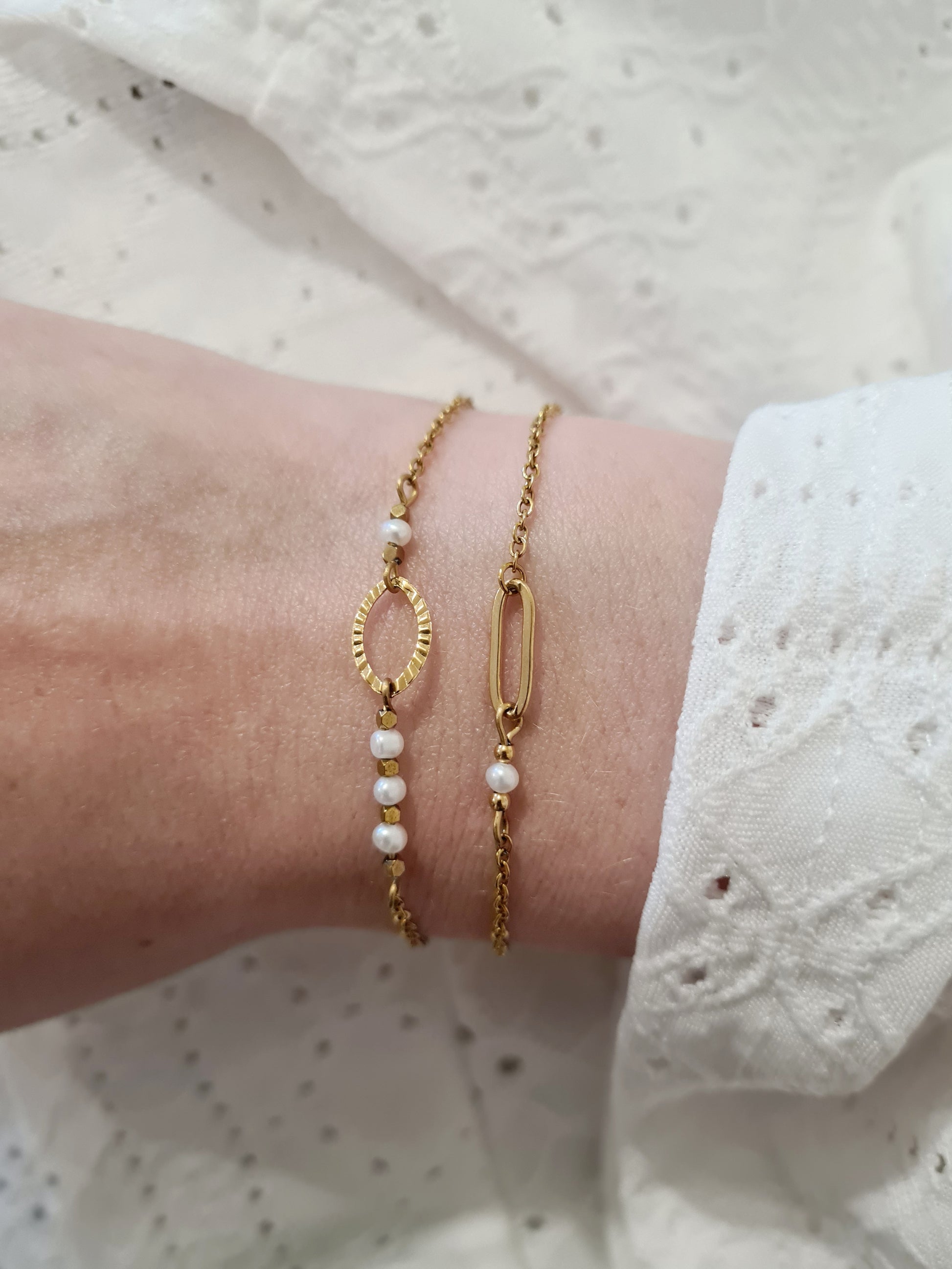 Horizon est un bracelet en acier inoxydable composées de véritable Perles d’eau douce.