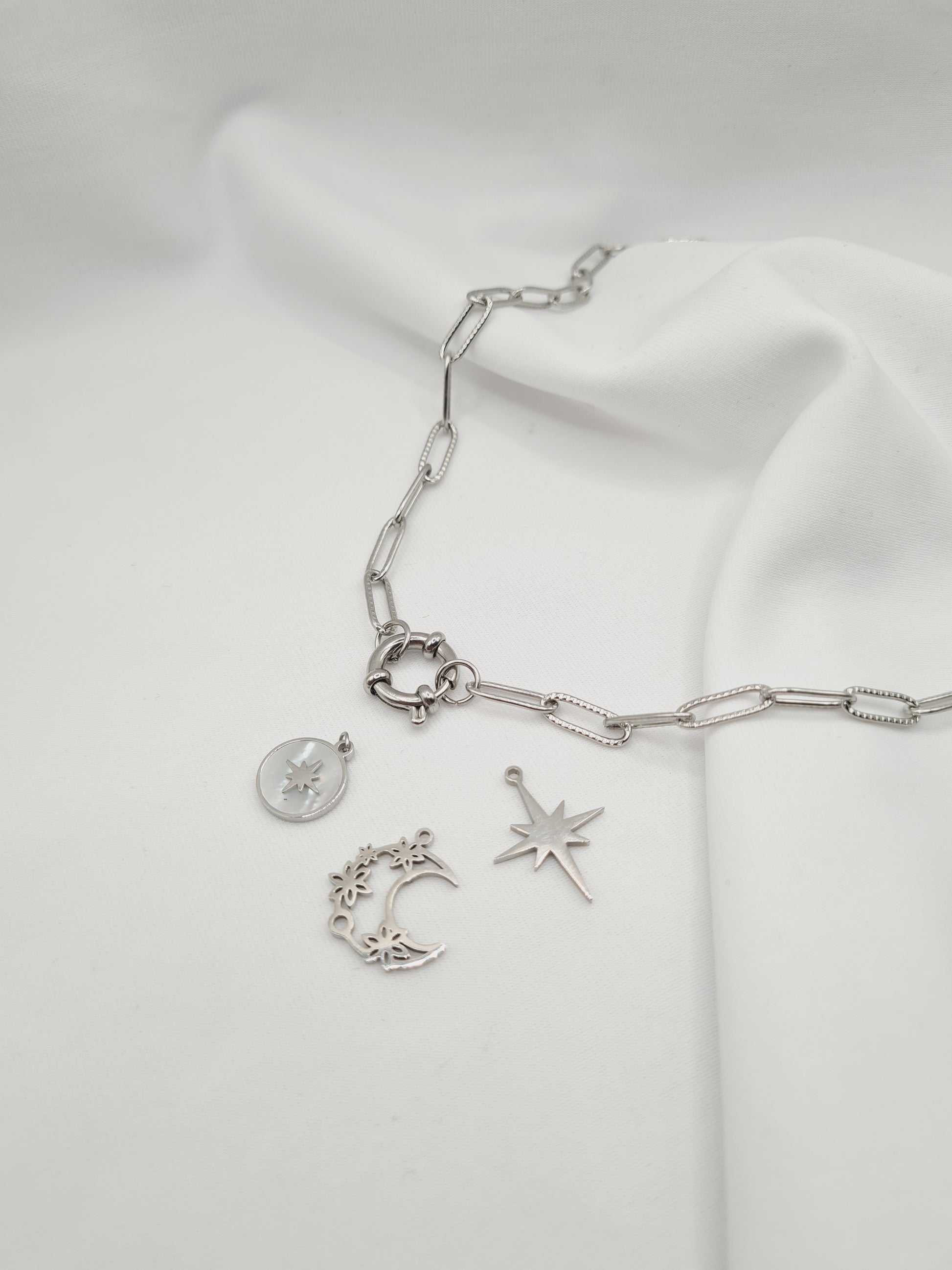 Pépi est un collier en acier inoxydable avec une fermeture mousqueton . Il peut être orné d’une ou plusieurs pampilles >> le Bar à Pampilles ici (Non incluse dans cet article)