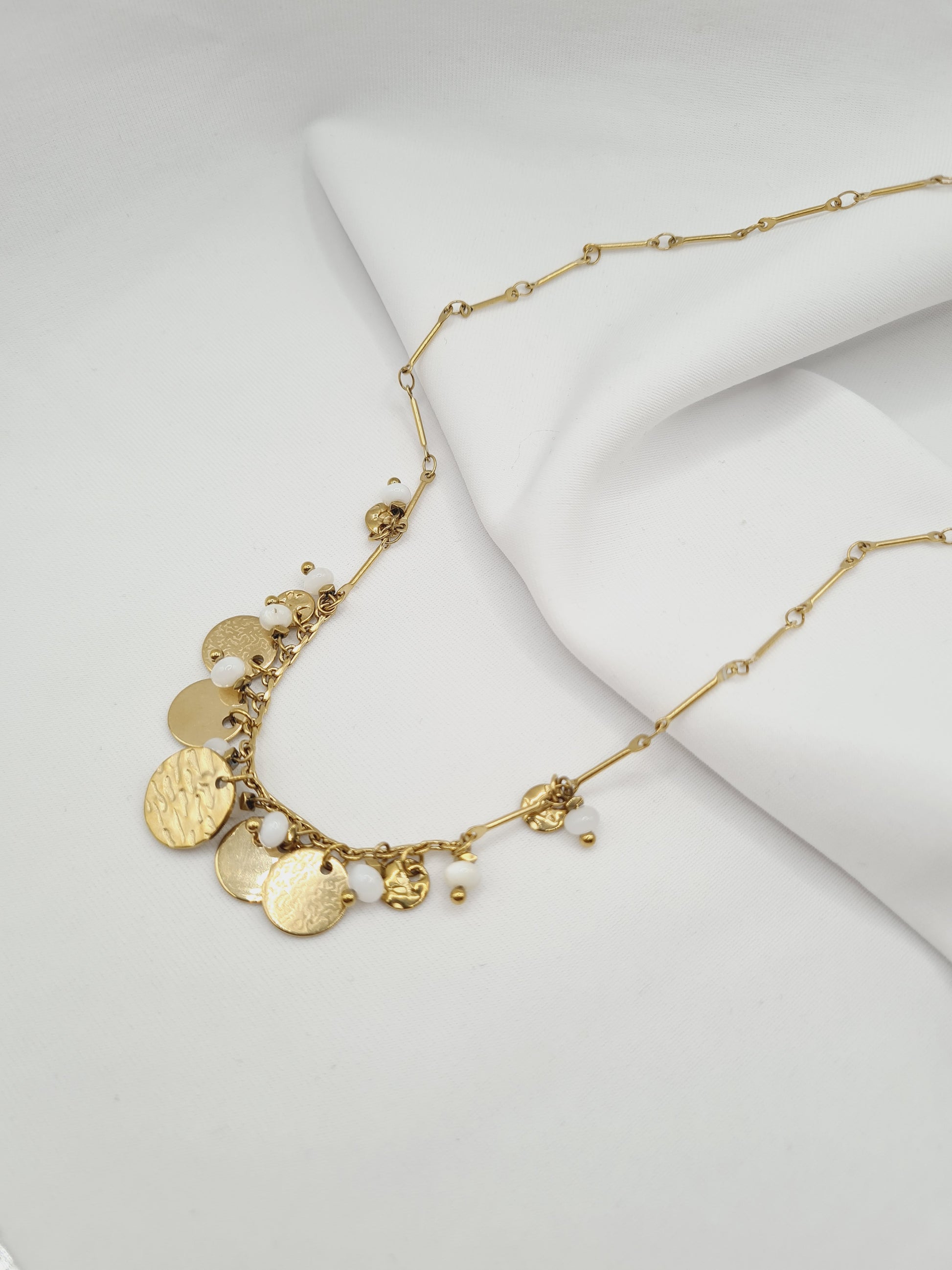Esméralda est un sautoir en acier inoxydable avec des pierres naturelles.