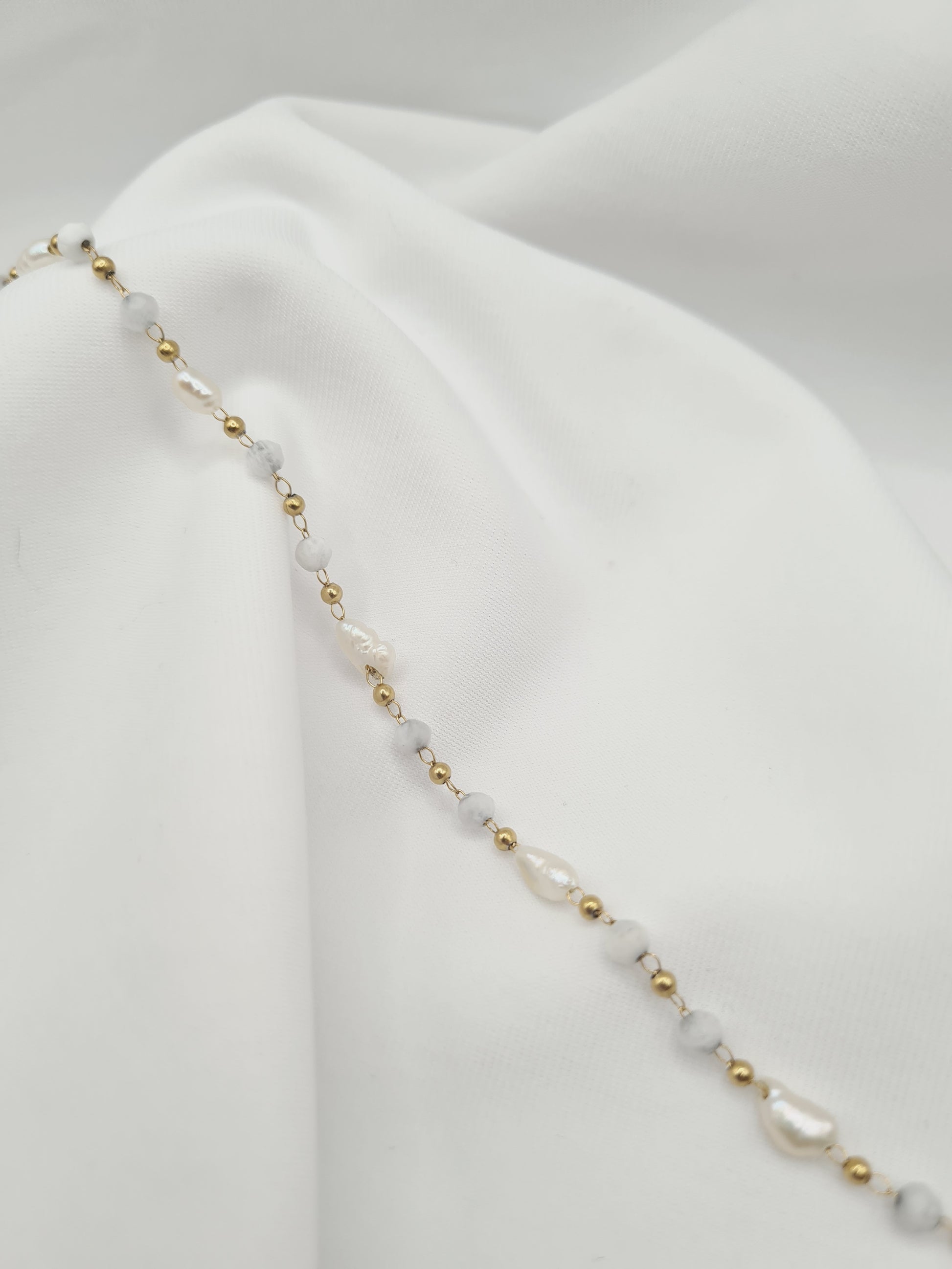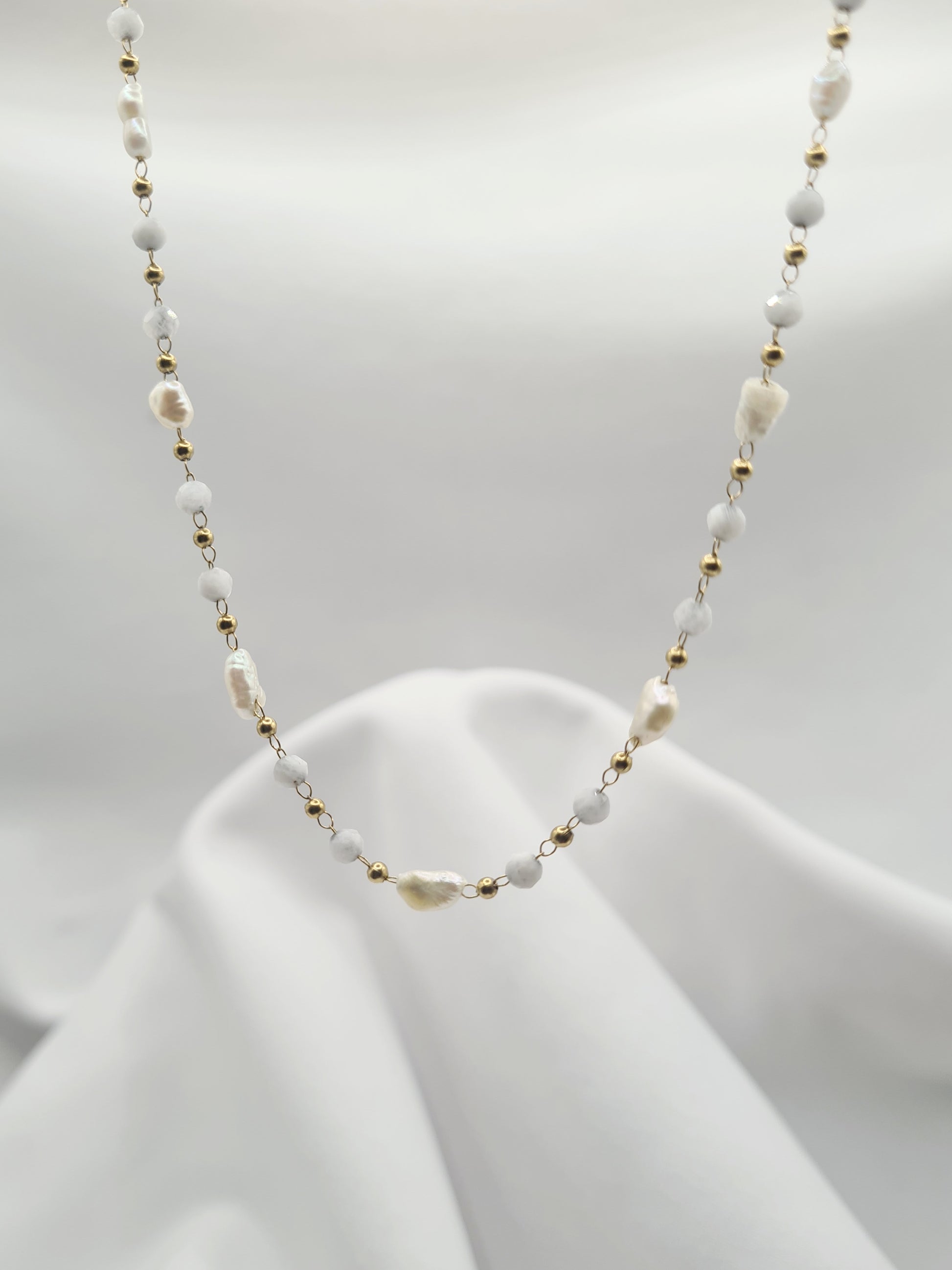 Canopée est un collier en acier inoxydable avec de sublimes perles d'eau douce.