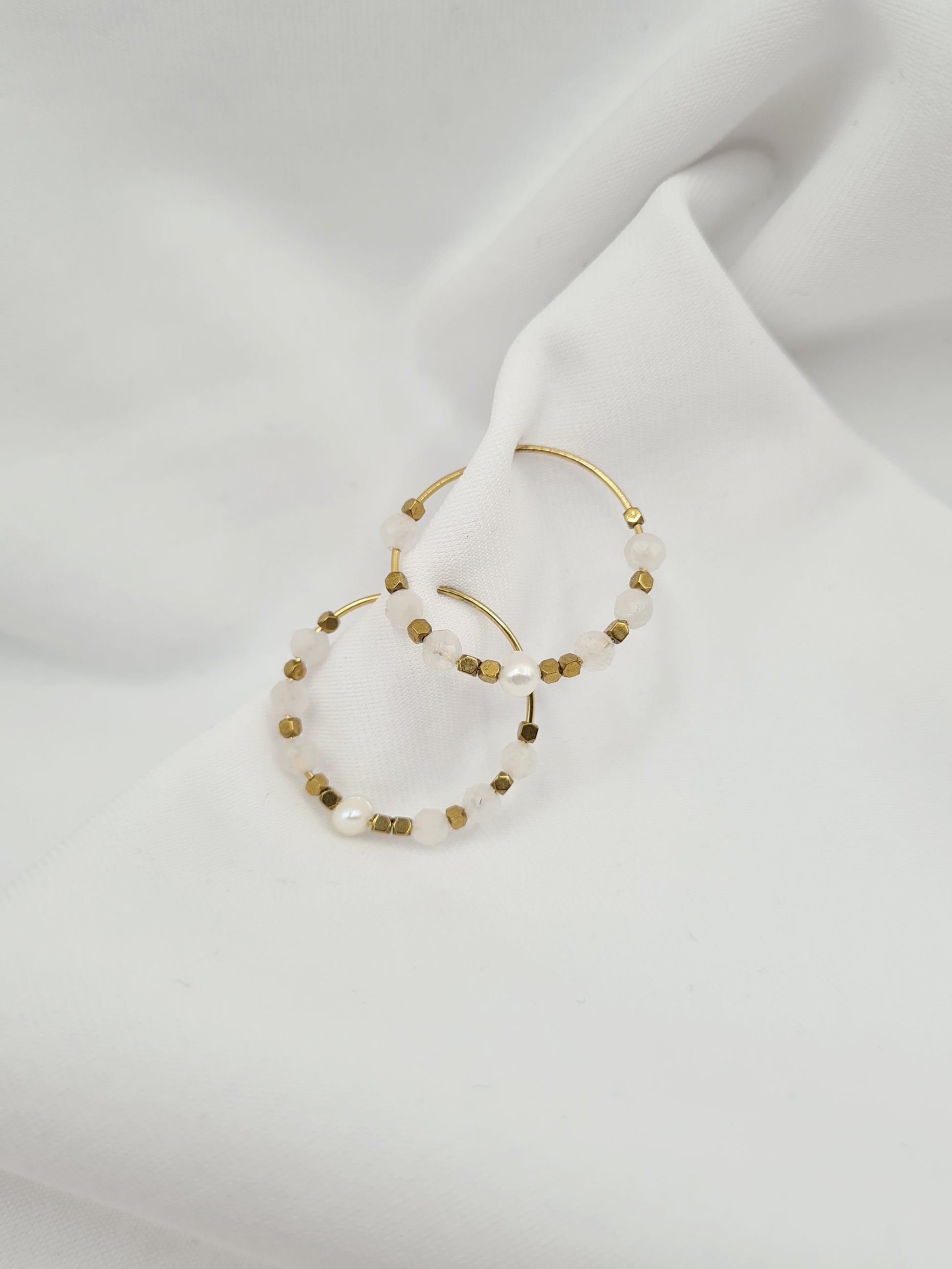 Dune sont des créoles en acier inoxydable avec des Perles d'eau douces. Elles ajouteront une touche discrète avec son design fin & minimaliste.
