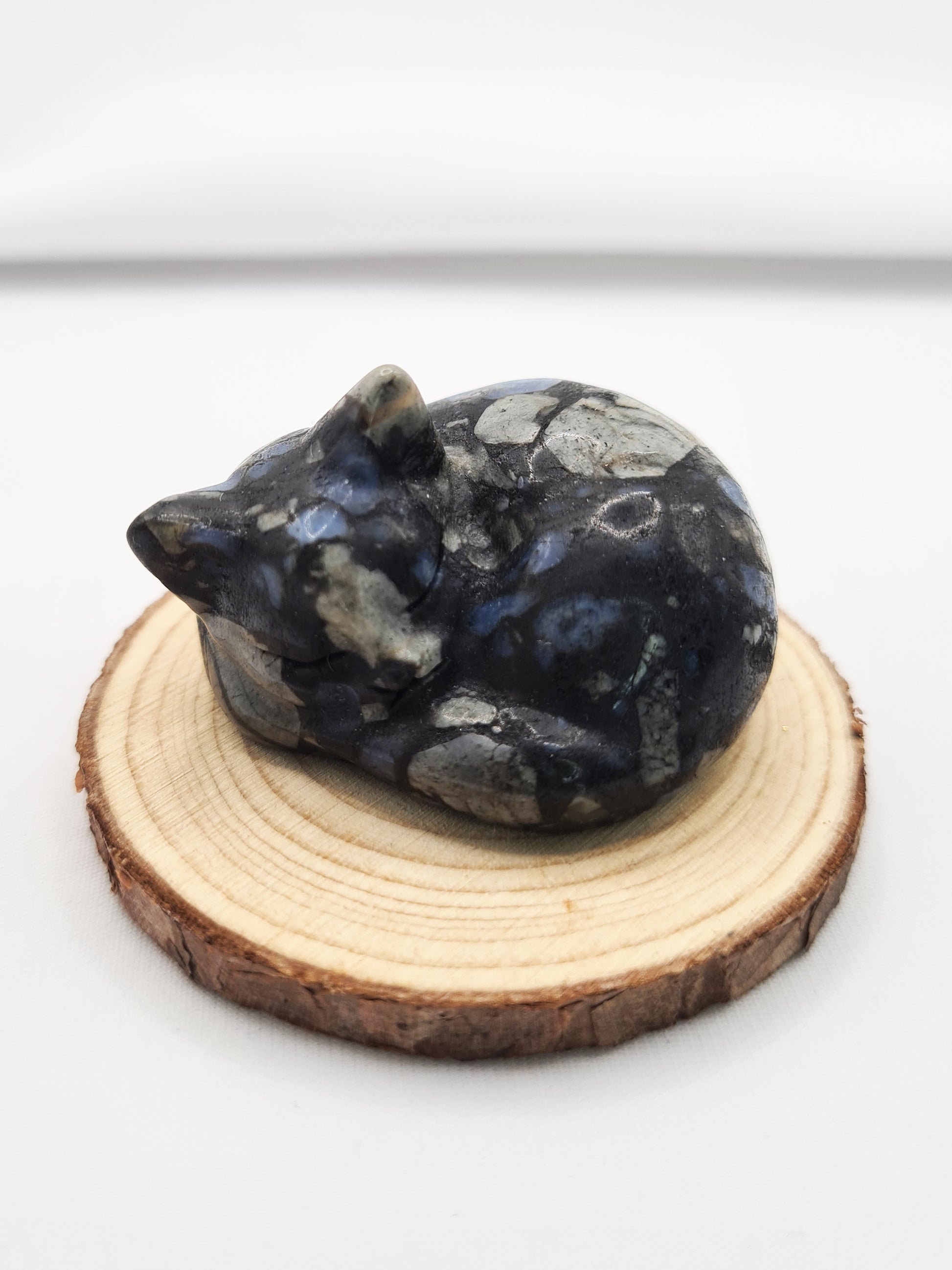 Cette figurine est faite de pierres naturelles d’Obsidienne/Amphibole bleue.