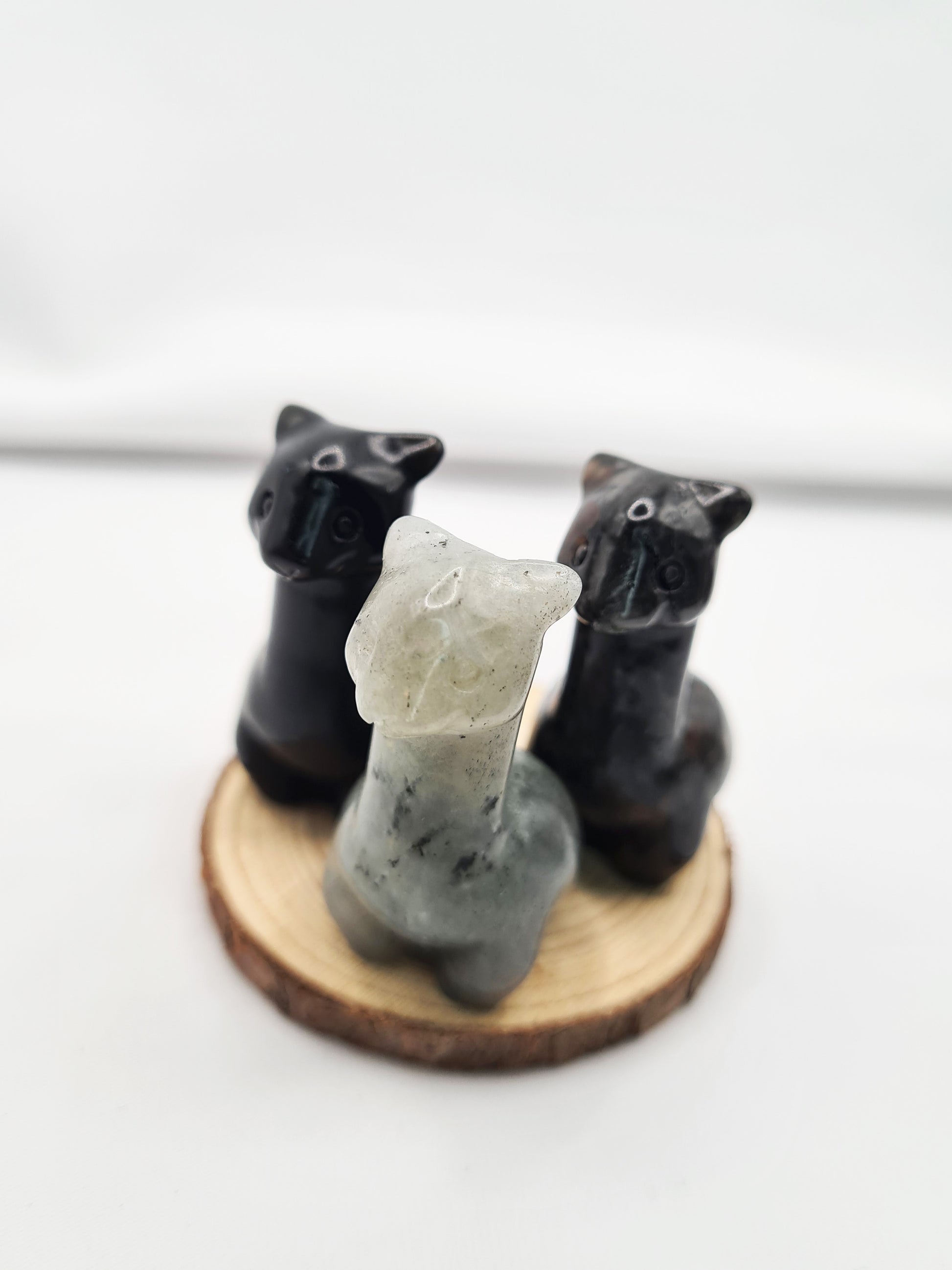 Cette figurine est faite de pierres naturelles d’Obsidienne/Labradorite/Pierre de Flamme.