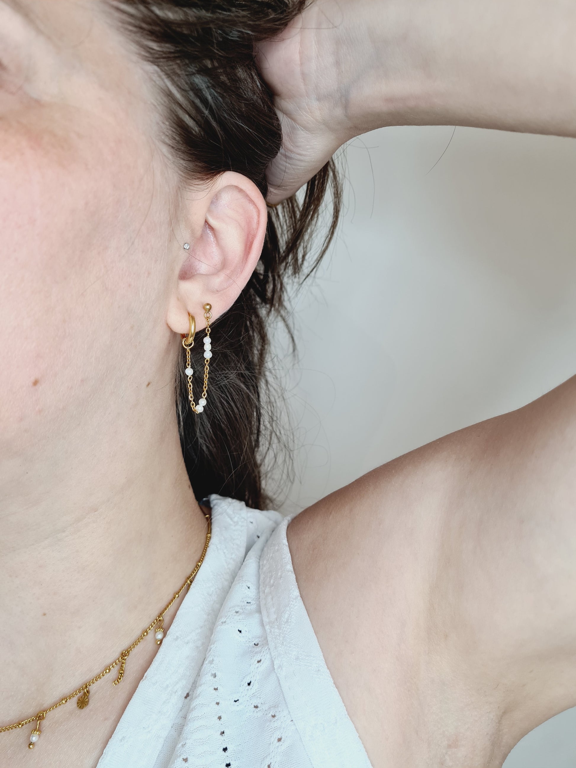 Diamètre : 12 mm / Chaîne lobe : 5,5 cm / Chaîne hélix : 8,5 cm