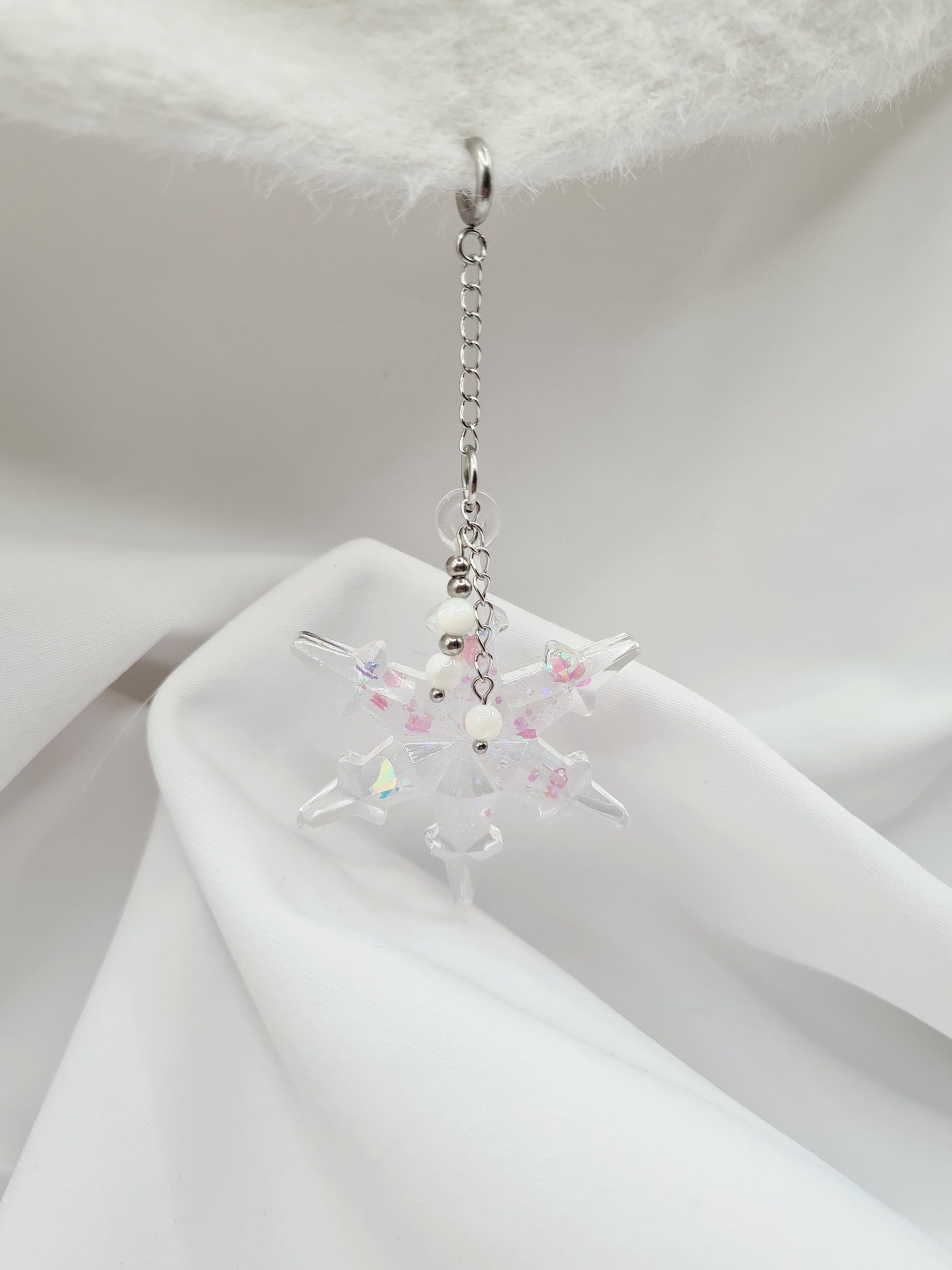 Ce porte-clef en forme de flocon de neige est réalisé à la main avec des Perles de nacre ♡